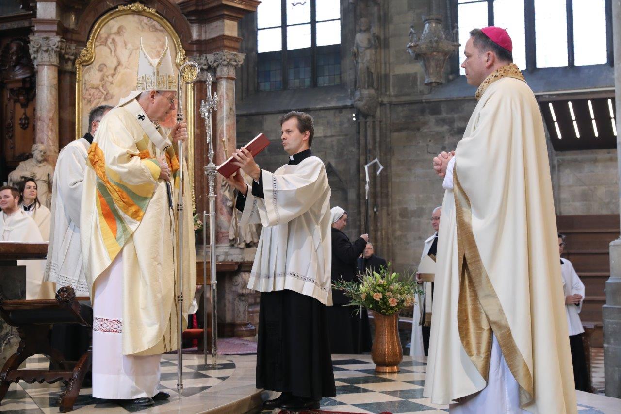 Als Hauptzelebrant eröffnete S. Em. Christoph Card. Schönborn, Erzbischof von Wien und Ehrenritter des Deutschen Ordens, das Pontifikalamt: Hierauf folgte die Vorstellung des neu gewählten Hochmeisters. Unter der Leitung des Hochmeisterlichen Kapellmeisters Mag. Thomas Dolezal wurde die Messe durch das Ensemble ARS MUSICA gestaltet.