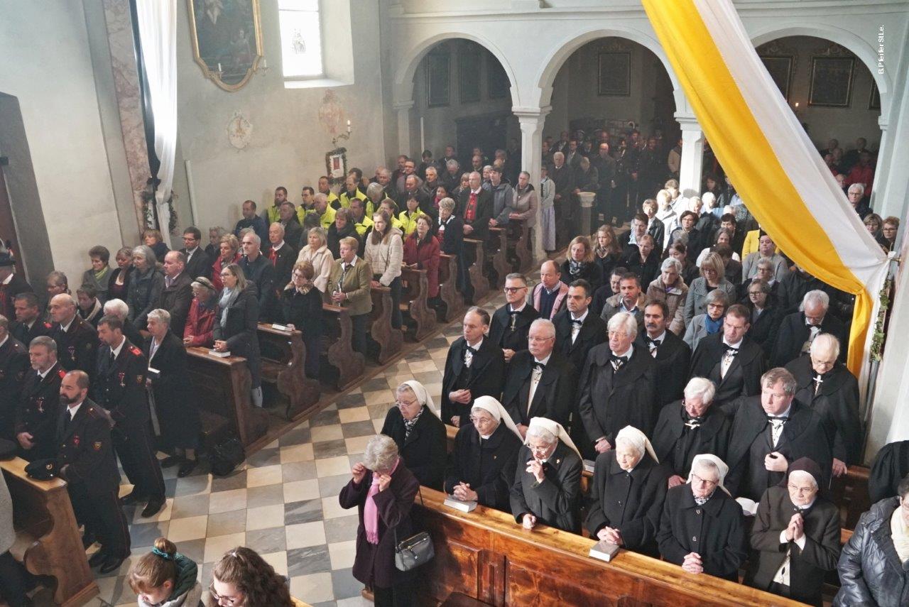 Am Sonntag, den 10. November 2019 nun wurde anlässlich des Festes des Pfarrpatrons, des hl. Leonhard, auch das 800-jährige Wirken des Ordens in St. Leonhard gefeiert. Hochmeister P. Frank Bayard OT kam zu diesem Anlass ins Passeiertal und feierte das Pontifikalamt in Konzelebration mit Pfarrer P. Christian Stuefer OT und P. Christoph Waldner OT zusammen mit vielen Gläubigen aus St. Leonhard sowie Brüdern, Schwestern und Familiaren des Ordens. Diakon P. Markus Mur assistierte den Priestern.